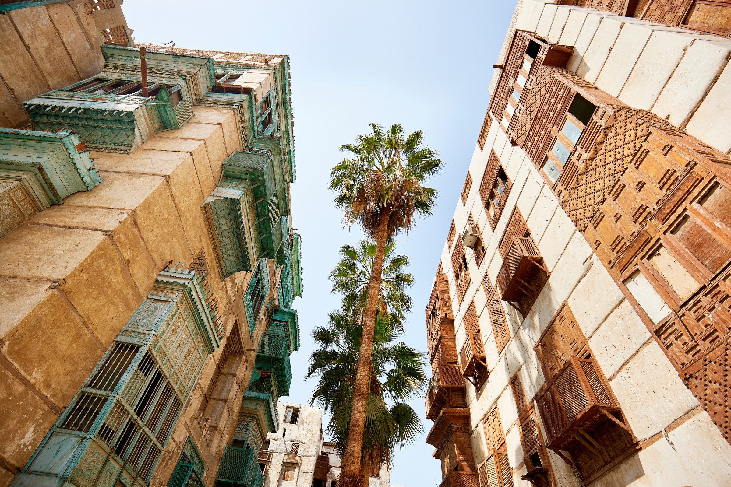 Arrive in Jeddah, where you can explore the historic Al-Balad district, a UNESCO World Heritage site known for its intricate coral-stone houses. Walk the New Jeddah Corniche for waterfront views or visit the "floating" Al Rahma Mosque built directly over the water.
