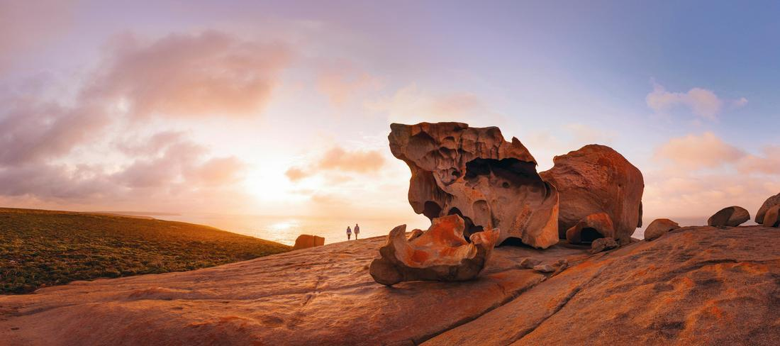 Travel into Flinders Chase National Park and explore the massive shapes of Remarkable Rocks, a natural sculpture perched impossibly on top a granite dome plunging into the ocean. Then you’ll break for an elegant picnic lunch in the bush, or if weather permits, on a spectacular clifftop. Evidence of the power of the Southern Ocean swell continues at Admirals Arch – a coastal grotto that provides a haul out for a large colony of Long-nosed Fur Seals, which swim effortlessly through the crashing waves.