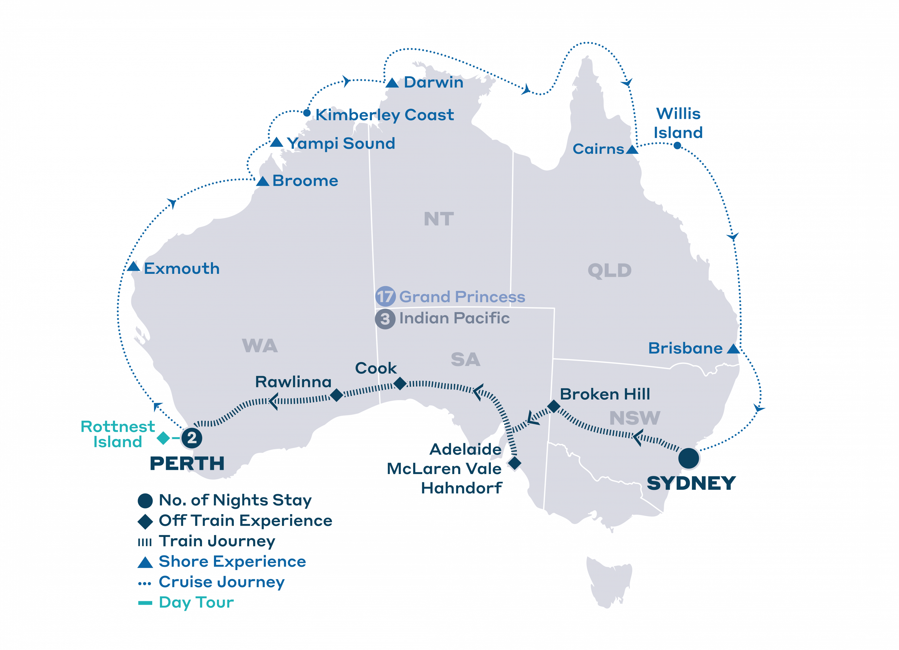 If you would like to conclude your journey in Brisbane, please reach out to your booking agent or our Travel Centre for details on this alternative itinerary option.