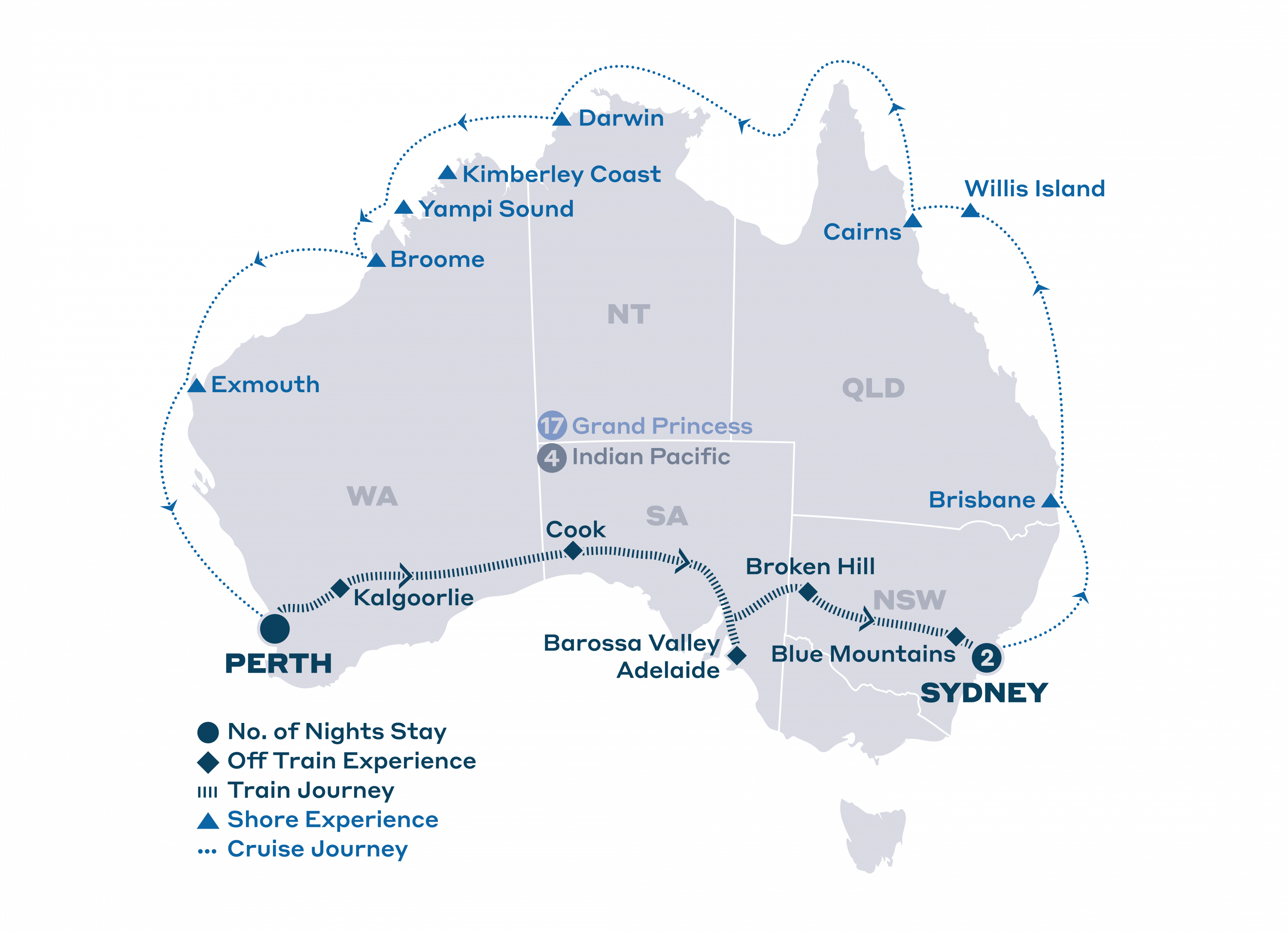 Farewell the Grand Princess® this morning as you disembark upon arrival into Fremantle, where your epic land and sea journey comes to its conclusion. (B)