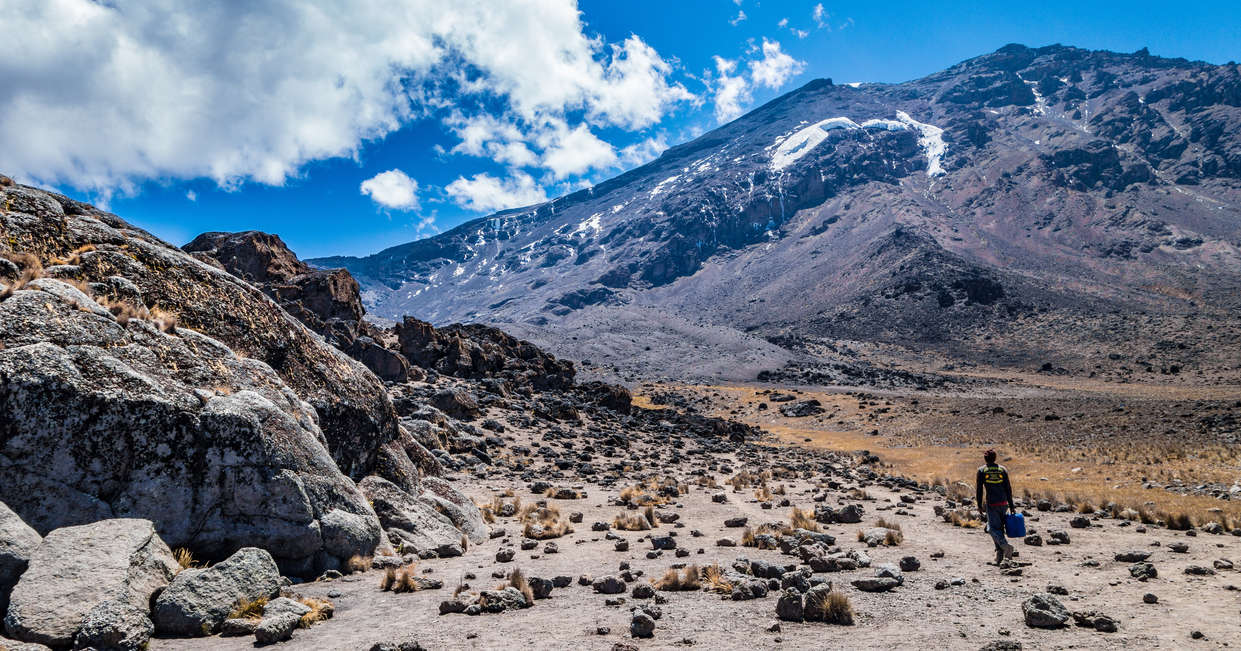 This morning, we'll climb out of the Karanga Valley following an easy path of compacted scree. The trek will be steep, constantly gaining altitude, until we reach our camp at Barafu (4640 metres/15224 feet).