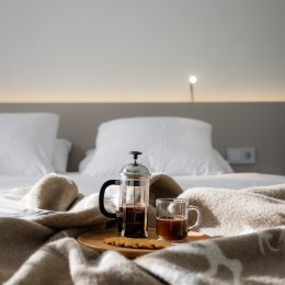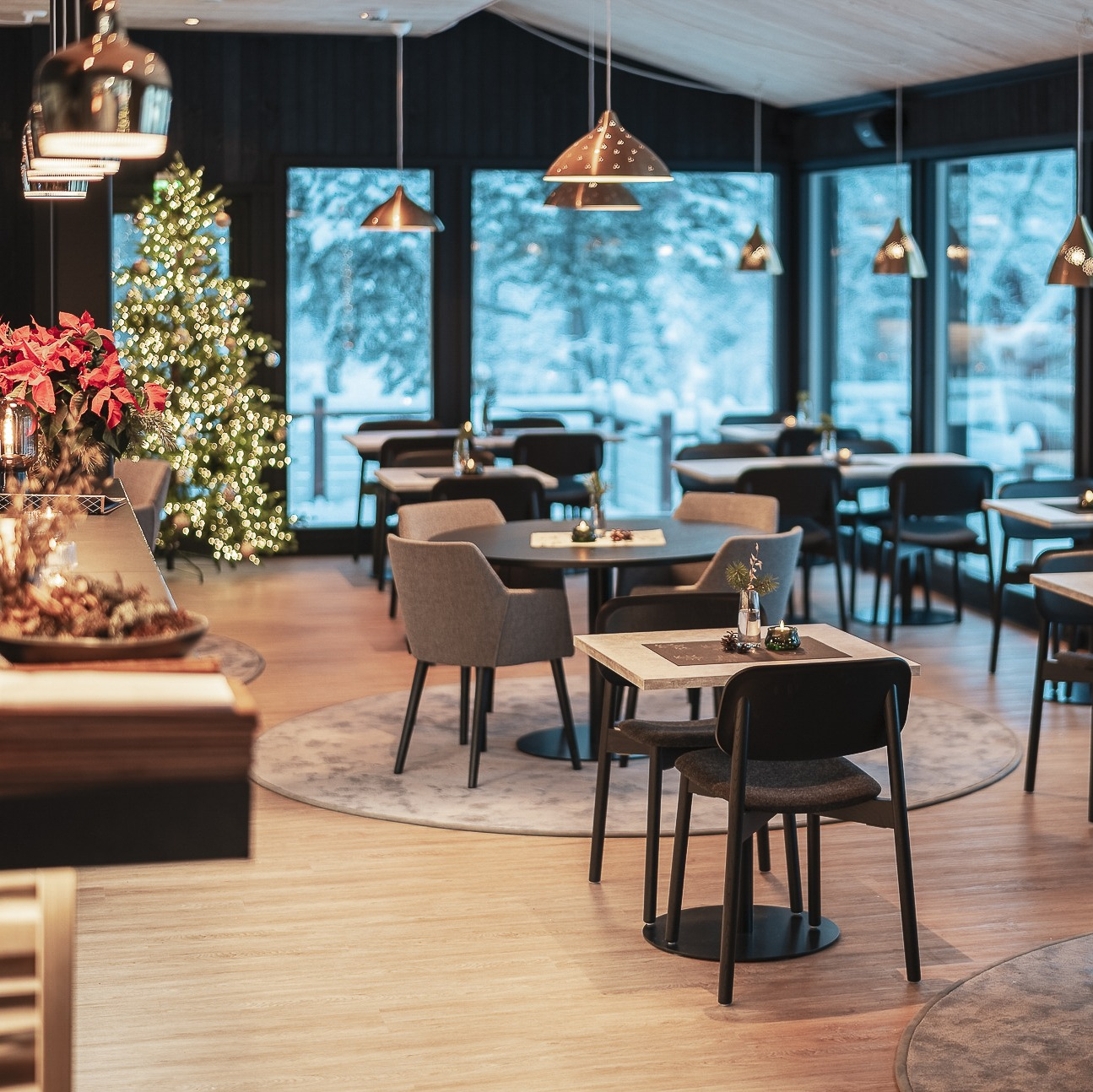 Stay at the new Wilderness Boutique Hotel in the heart of Inari, located by the shore of the River Juutua, which rapids are bubbling just next to the hotel. You can admire the rapids from the restaurant while enjoying gourmet meals at the well known restaurant Aanaar. A five course degustation meal at this very hotel is included during your stay.