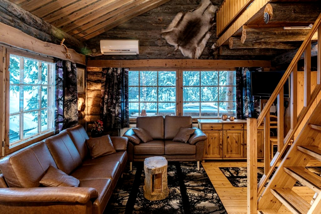 - Stay in cosy cabins or cabin apartments, each with their own fireplace and sauna