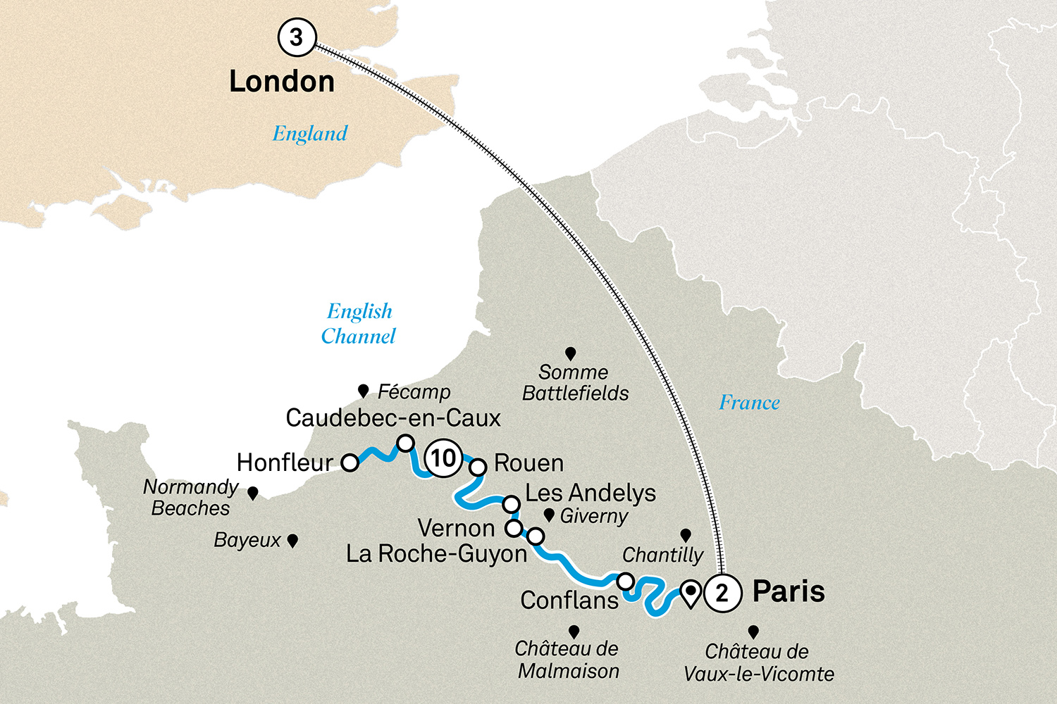 Discover the charms of Normandy on a journey that takes you along River Seine between the City of Light and the English Channel. This splendid waterway cuts through the heart of Paris, before winding its way along some of the most celebrated sites in northern France.