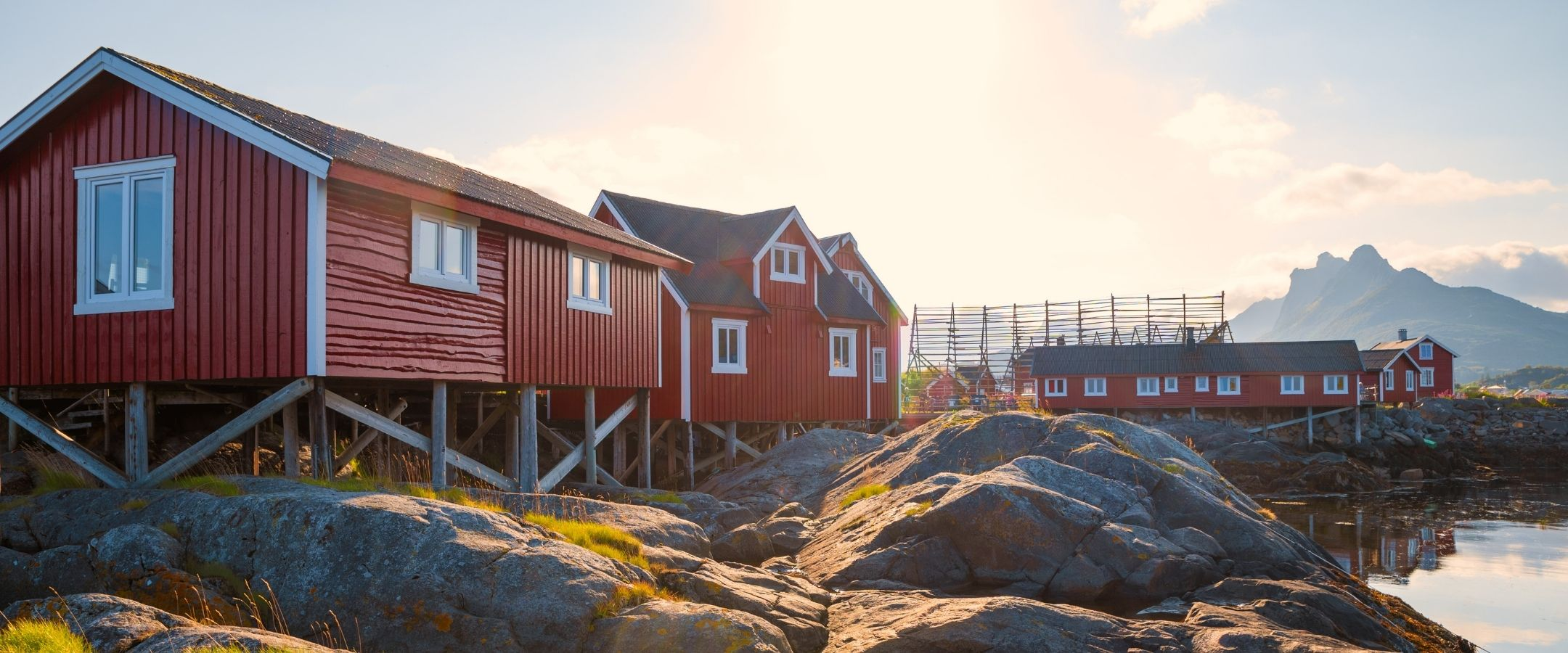 After your voyage, spend several days immersed in the extraordinary landscapes of the Lofoten Archipelago. Here, sharp granite peaks rise directly from the sea, traditional red fishing cabins line sheltered harbours, and white sandy beaches meet crystal-clear Arctic waters.