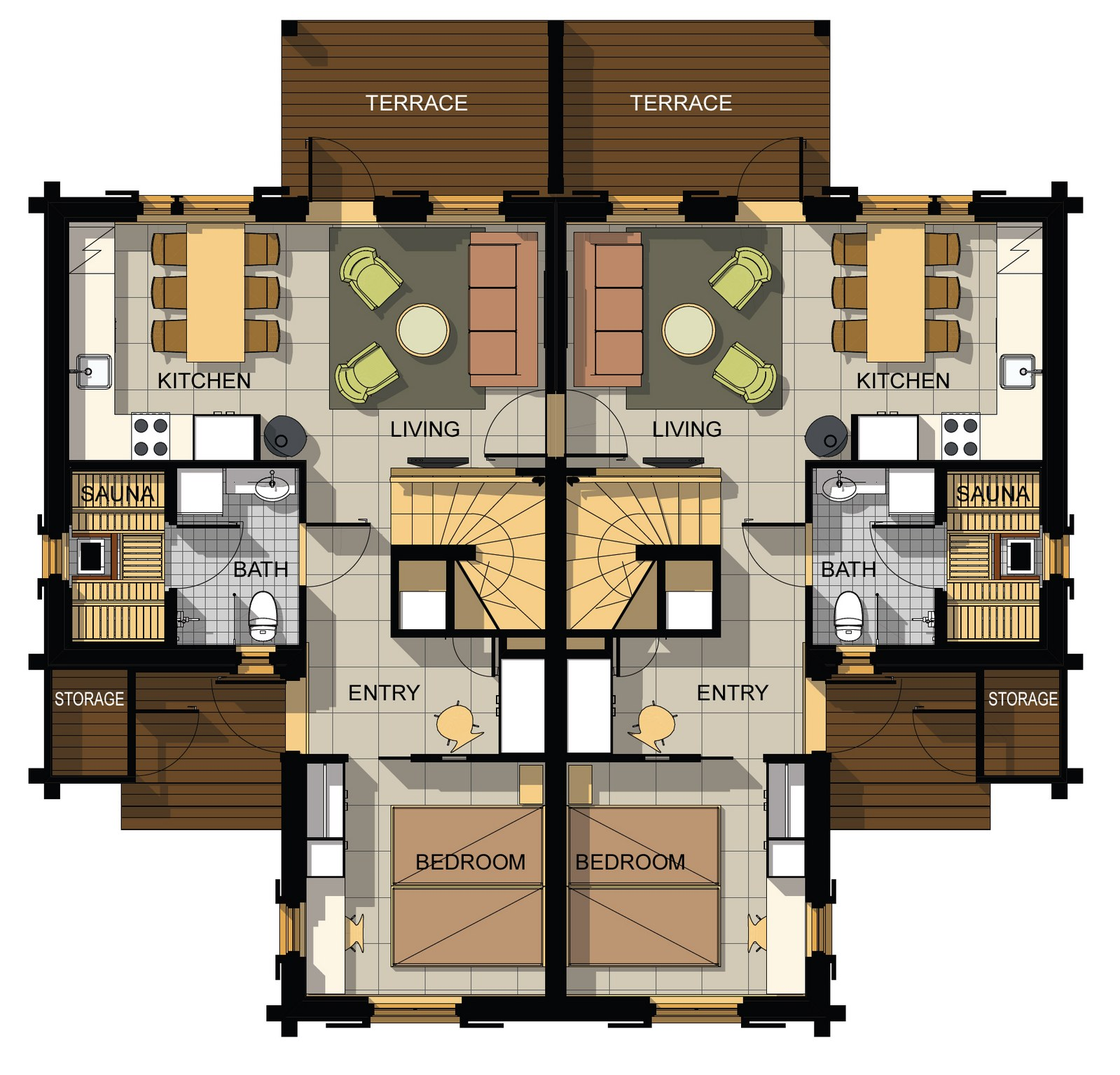 - Relax in contemporary style log cabins, suitable for families and groups.