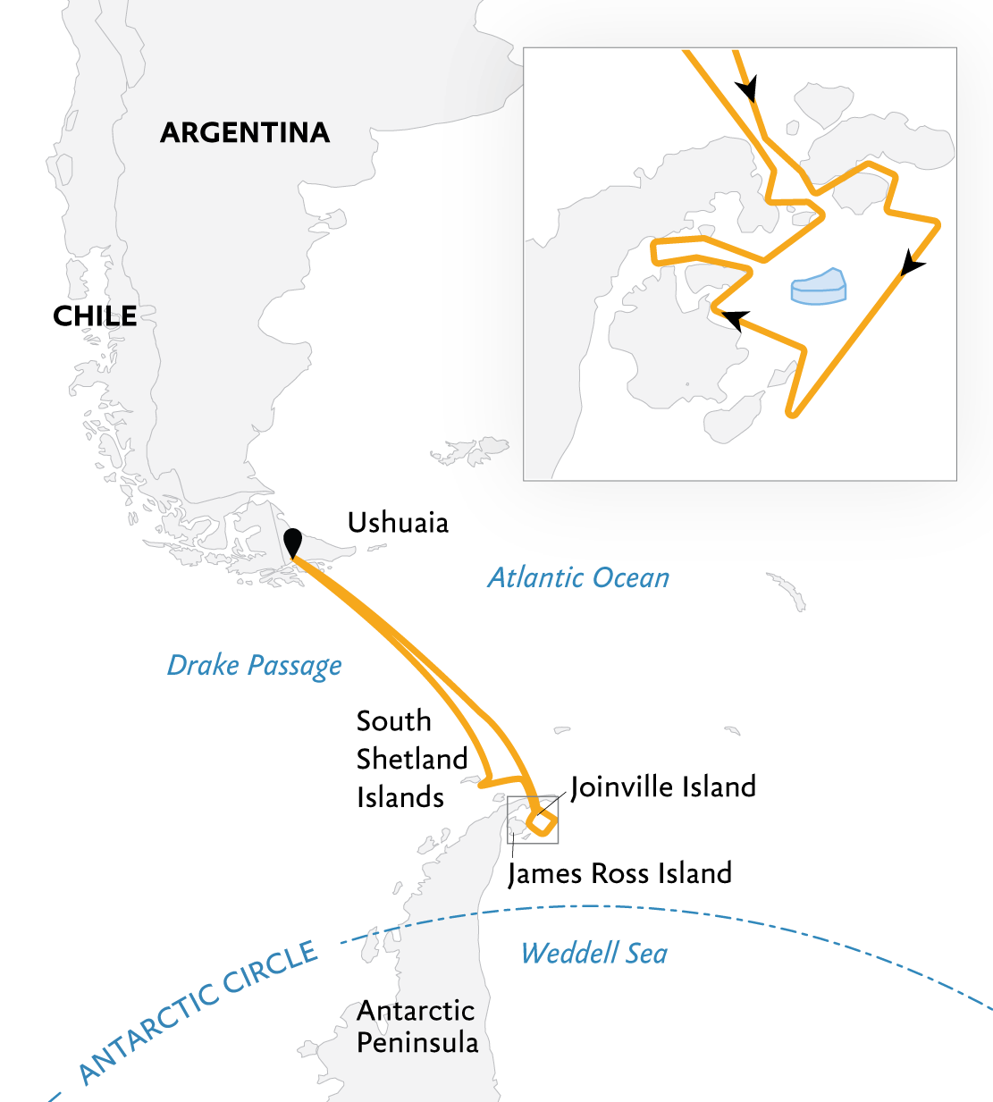 Join a rare, in-depth journey into the remote Weddell Sea and Antarctic SoundPhotograph massive flat-topped tabular icebergsVisit archeological sites amid volcanic and scenic landscapesSee tens of thousands of Adélie penguinsSpot a variety of whales: Humpbacks, minkes, fin, and, possibly, killer whales.Explore off-ship by Zodiac and kayak.