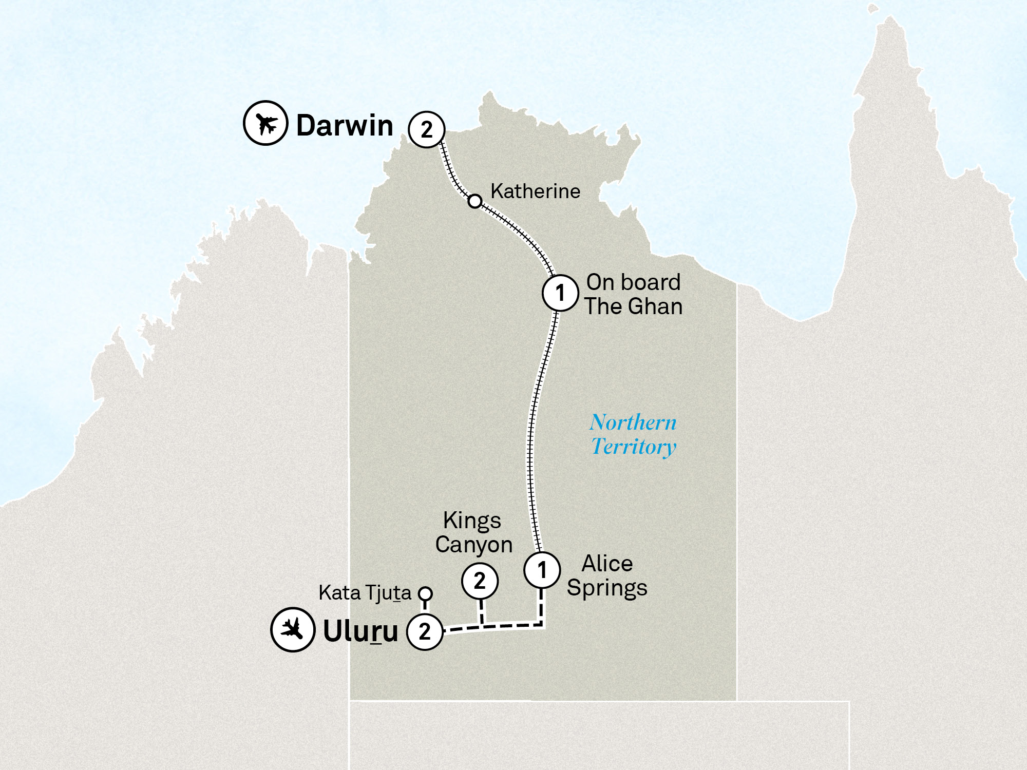 From sunrise to sunset, Uluru is a kaleidoscope of colour and movement. Take a cultural tour, venture further afield to the marvels of Kata Tjuta and Walpa Gorge, and be awed by the once-in-a-lifetime ‘Field of Light’ art installation, lighting up the desert night. Visit the iconic Royal Flying Doctor Service and the School of the Air, both monumentally important in connecting outback Australia to the rest of the world. The luxurious cabins, fine dining and incredible panoramas that greet you on The Ghan will truly delight as you make your way to sultry and welcoming Darwin on the journey of a lifetime.