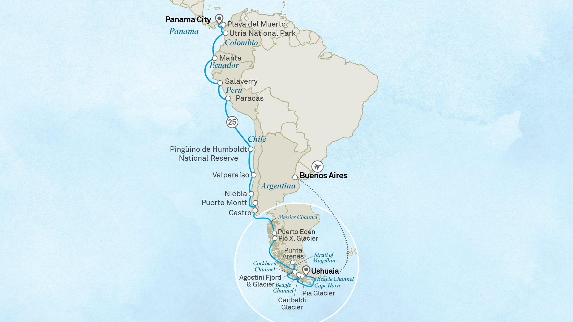 Embark on an extraordinary voyage along South America’s Pacific coast, where vibrant cities, ancient civilisations and untouched natural wonders await. From the tropical rainforests of Panama and Colombia to the majestic glaciers of Patagonia, this ultra-luxury expedition blends cultural discovery with breathtaking landscapes.