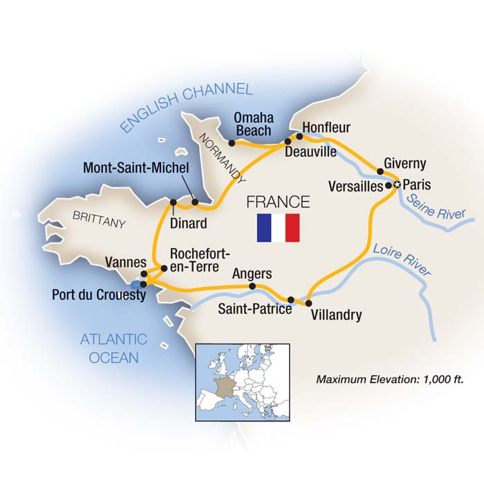 Visit the poignant beaches of D-Day, discover the rugged Brittany Coast, dine at an elegant estate in chateaux country, and spend three memorable nights in Paris on one of our most comprehensive journeys in France.