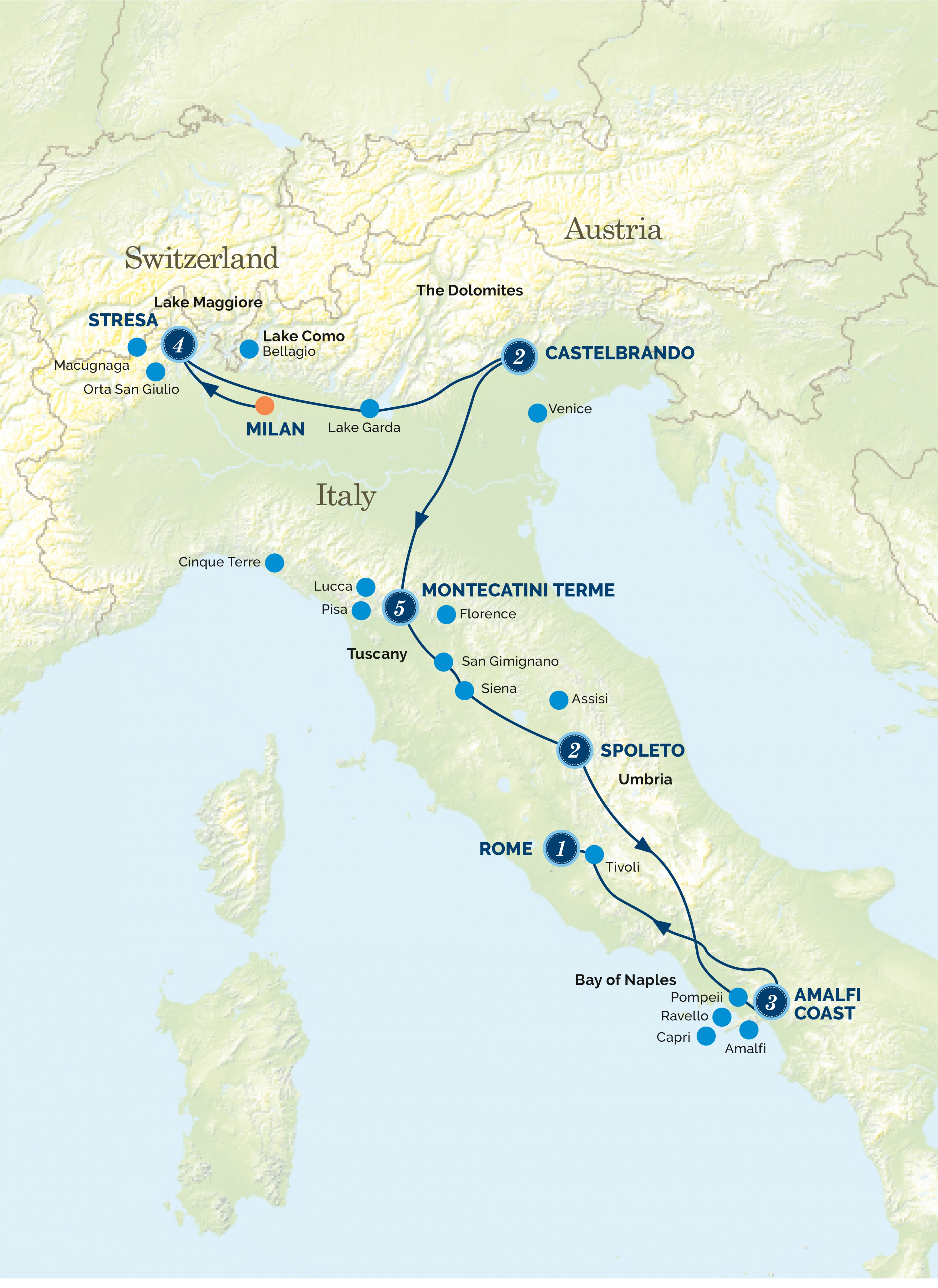 Explore Italy’s evocative regions as you travel from Milan to Rome