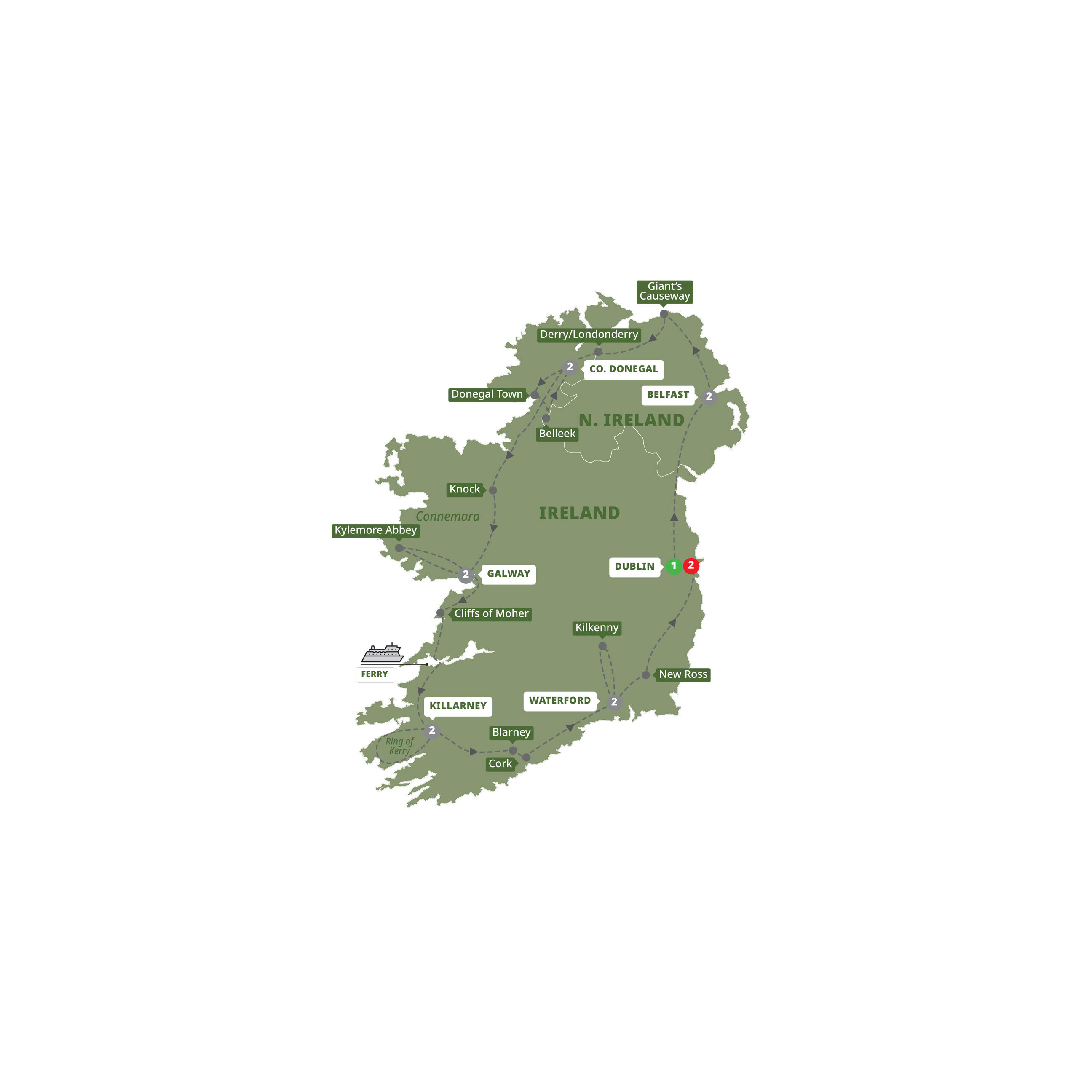 - Visit the Titanic Experience in Belfast, the Giant's Causeway, Belleek's Pottery Visitor Centre, Kylemore Abbey, Connemara, Cliffs of Moher, Blarney Castle, the Waterford Crystal showroon and the John F. Kennedy Arboretum and the Dunbrody Famine Ship in New Ross