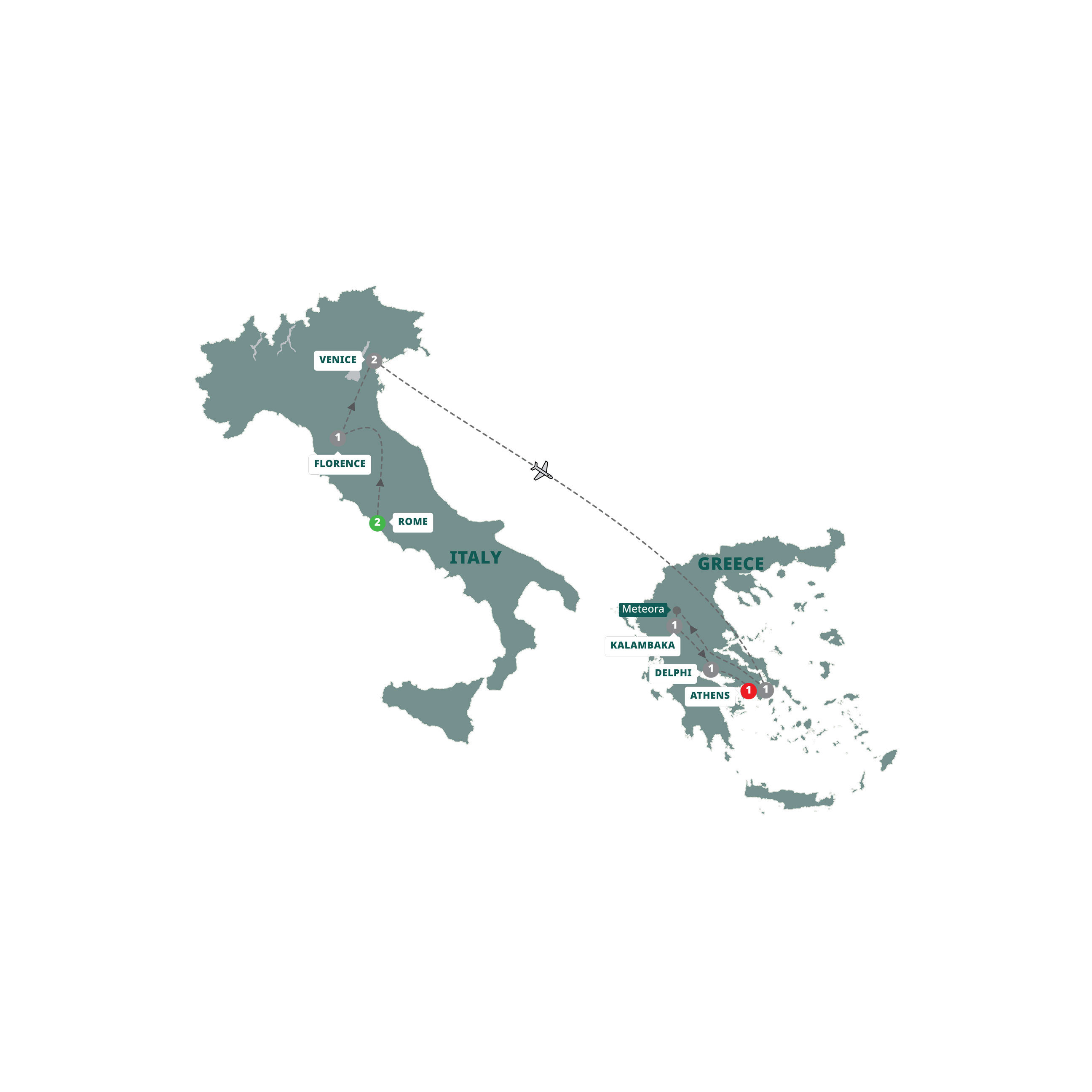 - Explore Rome, Florence, Meteora monasteries, Delphi and Athens