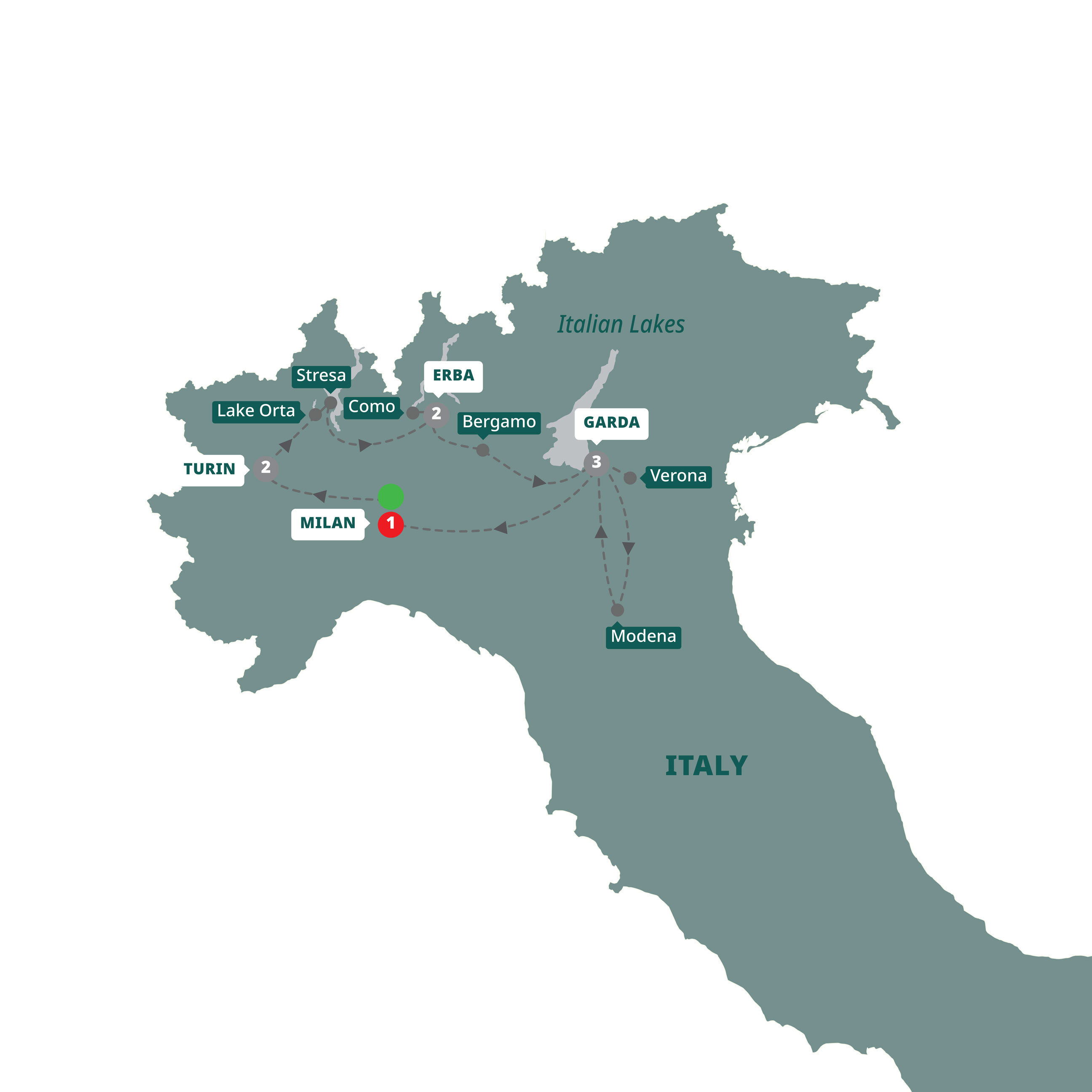 From the grand boulevards of Turin to the fashion streets of Milan, this nine-day journey takes you through the lakes, countryside and traditions of northern Italy. Spend time in Verona and Modena, where you’ll visit an acetaia for a MAKE TRAVEL MATTER® Experience and taste aged balsamic vinegar made using centuries-old methods. Settle into the lakes to explore the winding shores of Lakes Garda, Maggiore and Como. Visit the Enzo Ferrari Museum and share a home-cooked meal with the Serenelli family on their farm, a site tied to the Battle of Solferino. Along the way, take in the scenic towns, local flavours and an easy going pace of life.