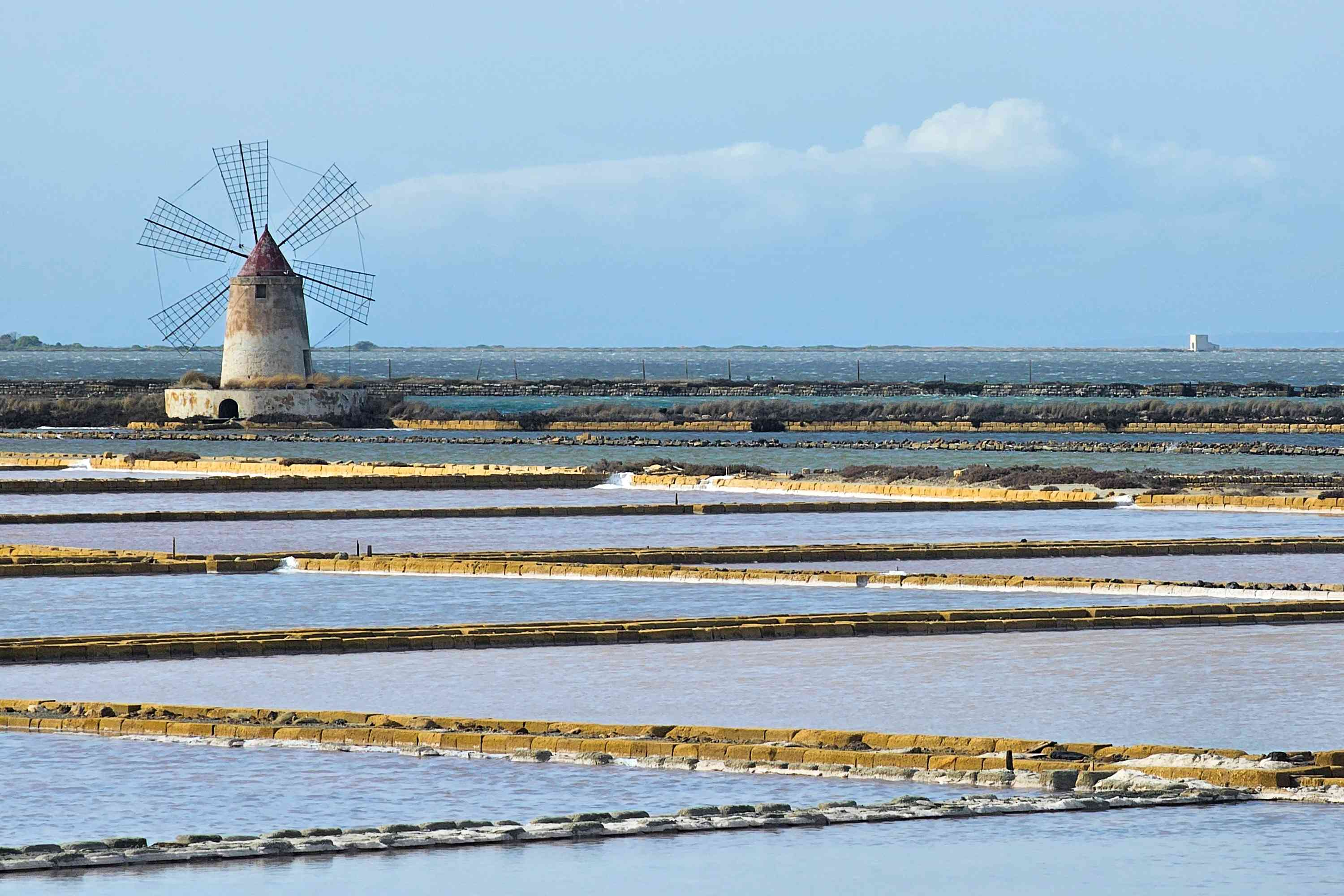 Located just nearby, we’ll also wander over to the mesmerising Marsala salt flats. Marvel over the pastel blue, pink and apricot hues of the shallow lagoons, stretching across a landscape that’s reminiscent of a giant patchwork quilt of seawater. We’ll learn about the salt production process that has roots dating back to Phoenician times, gaining insight into this ancient industry.