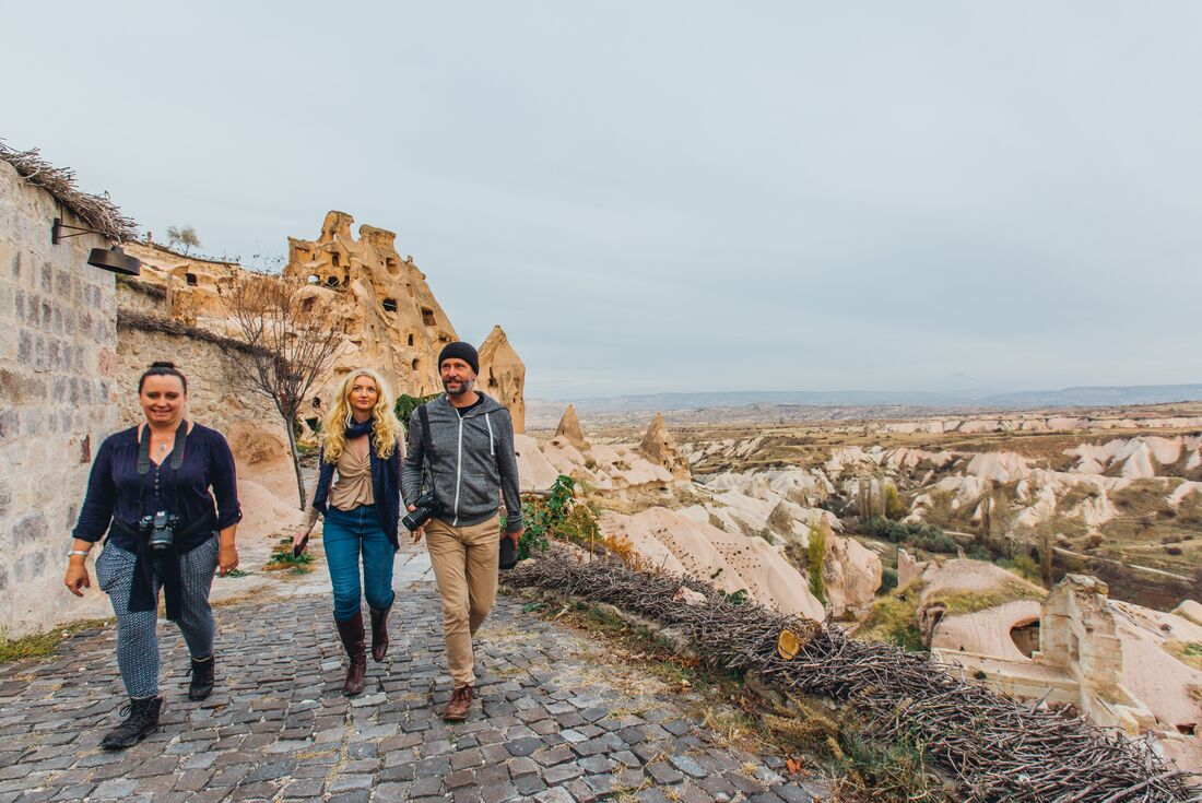 This morning you have the option to take a hot air balloon flight, a once-in-a-lifetime experience to watch on as the sun illuminates the skyline dotted with balloons. Even if you'd prefer not to take a flight, it's still worth waking up for this truly incredible sight. Later in the morning, head out to the Goreme Open Air Museum, a monastic complex and Christian sanctuary of carved houses, churches and monasteries. The museum was one of the earliest centres for religious education and there are at least ten churches and chapels in the complex, dating between AD 900 and 1200. Enter the cave chapels and witness the exquisite colour of the biblical frescoes found within. The Dark Church has a particularly stunning interior, which you may choose to visit at an additional cost. The afternoon is free for you to spend as you wish - perhaps consider a sunset hike, ask your leader for the best places.