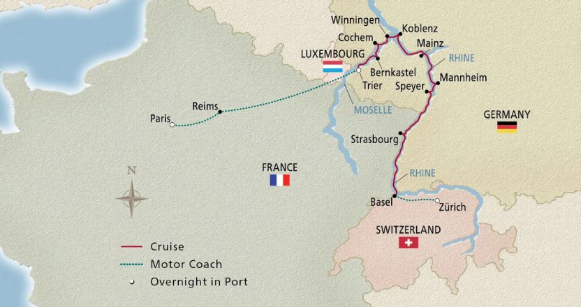 Revel in yuletide cheer as you discover beloved European holiday traditions during this scenic 12-day cruisetour. Admire festive seasonal displays in Paris, the vibrantly lit facade of the cathedral in Reims and Alsatian bonhomie in Strasbourg. Browse stalls full of local delicacies and handicrafts at the charming Christmas markets of Trier, Koblenz and Mannheim, and enjoy a warm mug of glühwein while in the shadow of the Alps in Zürich.