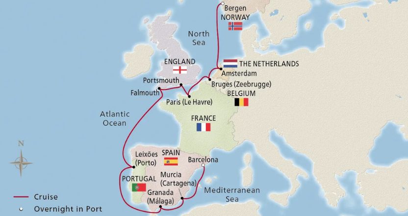Trace medieval routes of commerce during a fascinating 15-day cruise bookended by enriching overnight stays in Bergen and Barcelona. Explore three of Europe’s most picturesque cities: Amsterdam, Bruges and Paris. Call on England from the historic ports of Portsmouth and Falmouth and admire the neoclassical gems of the wine-making city of Porto. Explore Málaga, gateway to Granada’s stunning Alhambra palace, and view the splendid Roman ruins of Cartagena.